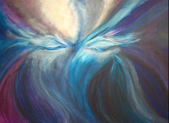 Silver, grey cloud, aquamarine and violet acrylic.